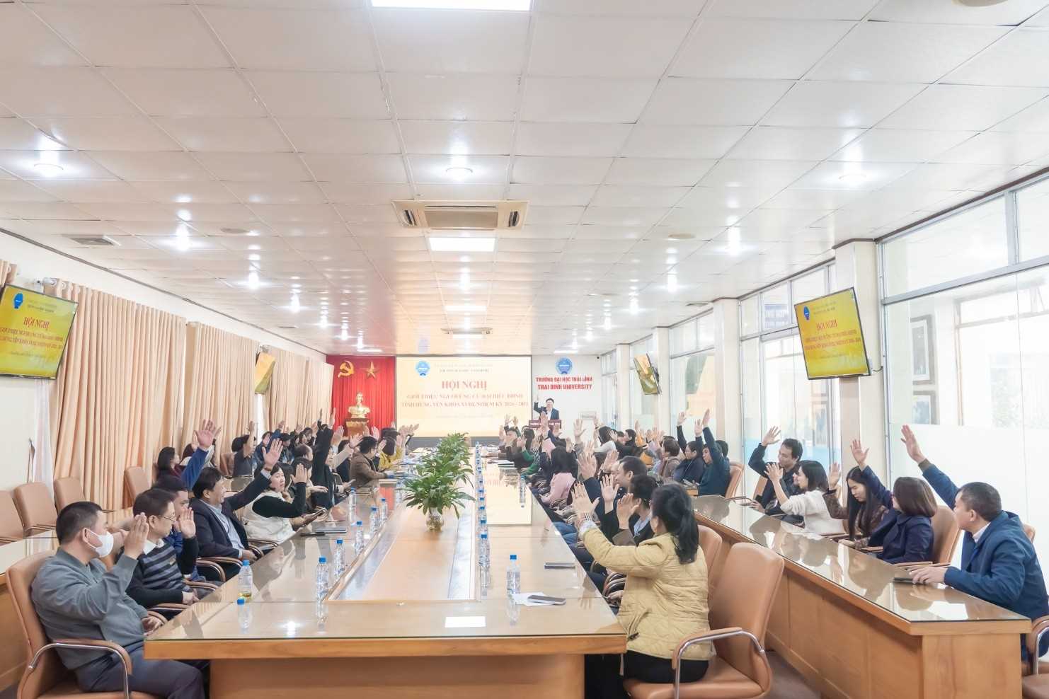 Sáng ngày 12/01/2026, Trường Đại học Thái Bình đã tổ chức Hội nghị giới thiệu người ứng cử đại biểu Hội đồng nhân dân tỉnh Hưng Yên khóa XVIII, nhiệm kỳ 2026-2031. Đây là sự kiện chính trị quan trọng, thể hiện trách nhiệm của Nhà trường trong việc lựa chọn giới thiệu những đại biểu tiêu biểu, xứng đáng đại diện cho ý chí, nguyện vọng và quyền làm chủ của Nhân dân, góp phần xây dựng hệ thống chính trị ngày càng vững mạnh.