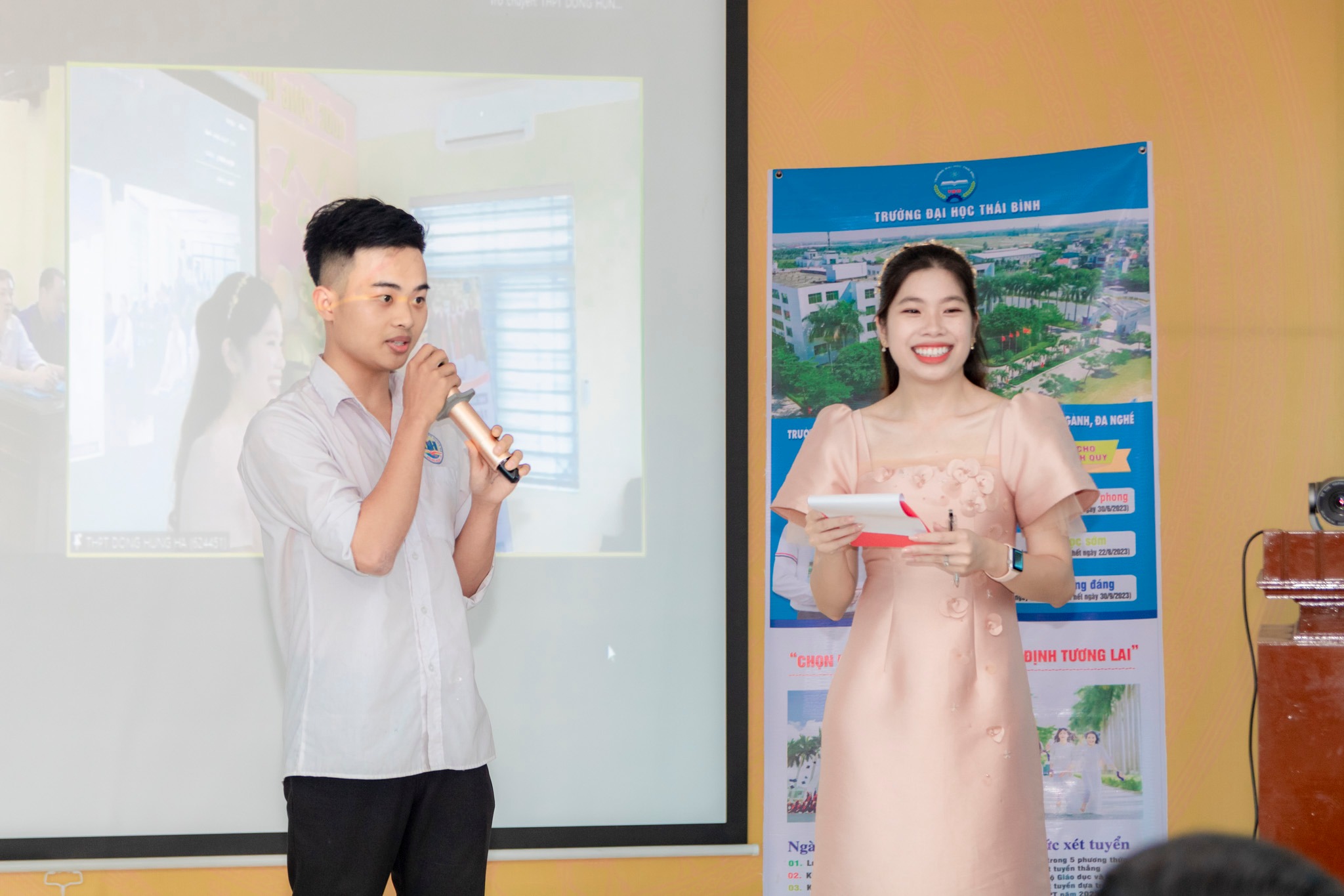 Chương trình Giao lưu – Tư vấn tuyển sinh năm 2023 và Ký kết thoả thuận hợp tác giữa hai Nhà trường đã diễn ra trong không khí tưng bừng, phấn khởi và thu hút được sự chú ý, quan tâm của đông đảo các bạn học sinh trường THPT Đông Hưng Hà. Trong khuôn khổ chương trình các em học sinh được chia sẻ các thông tin liên quan đến các ngành nghề đang thu hút nguồn nhân lực, đưa ra những định hướng nghề nghiệp; thông tin tuyển sinh năm 2023, hoạt động đào tạo, môi trường học tập, cơ hội việc làm sau tốt nghiệp, các chế độ chính sách đối với người học, các thông tin về học bổng dành cho Tân sinh viên năm 2023 của trường Đại học Thái Bình.