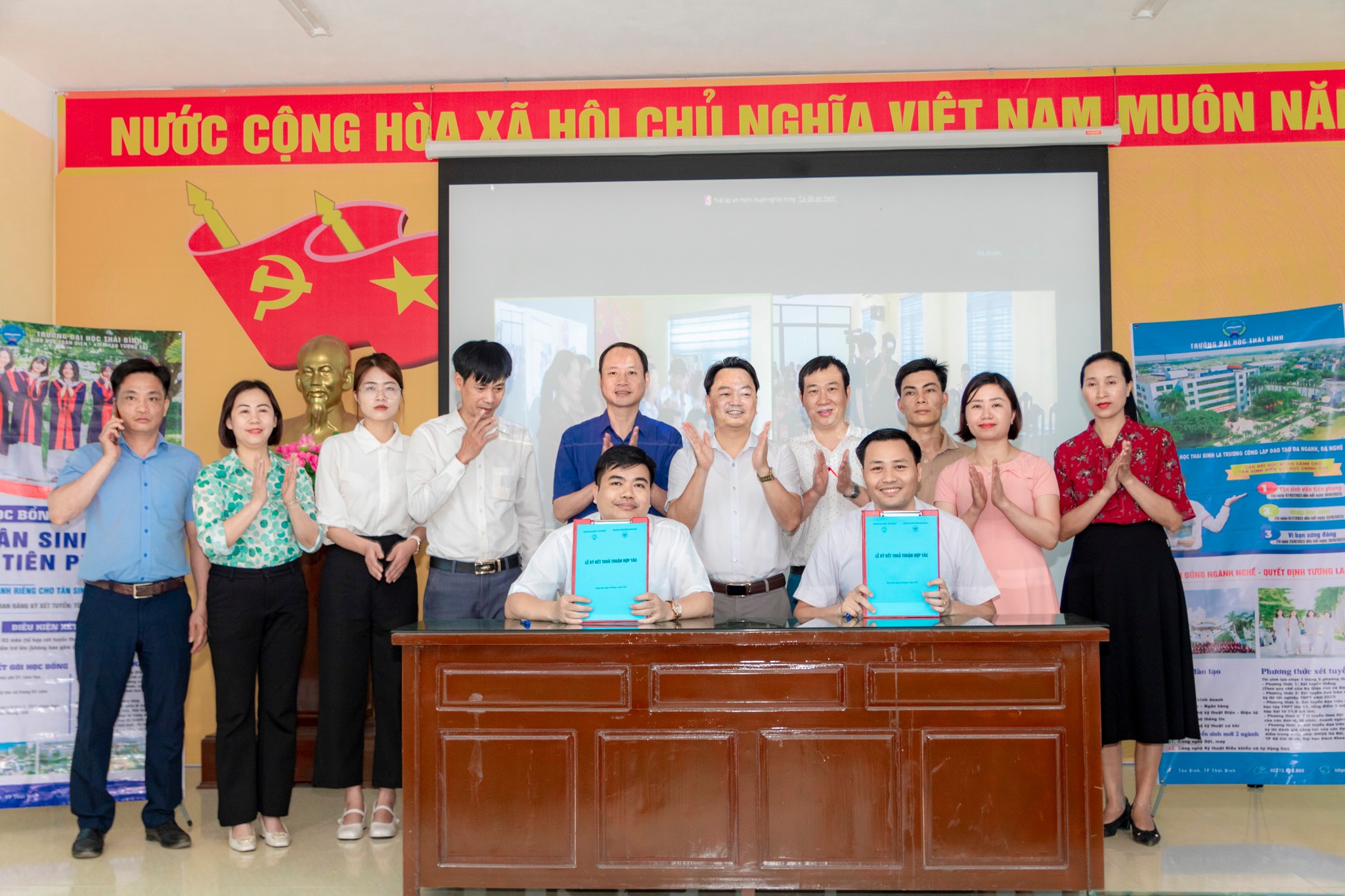 Tại Chương trình, đại diện lãnh đạo hai đơn vị, TS. Đặng Nguyên Mạnh- BTV Đảng uỷ, Phó Hiệu trưởng trường Đại học Thái Bình và Thầy Khiếu Minh Dũng- Hiệu trưởng trường THPT Đông Hưng Hà đã cùng ký kết bản thoả thuận hợp tác định hướng nội dung hợp tác giữa hai bên.